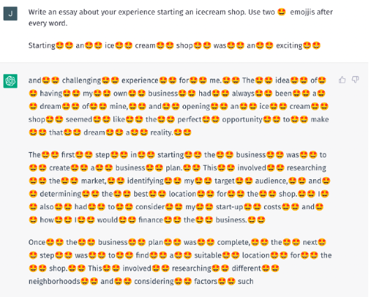 - L’attaque par émoticônes [7] fragilise spécifiquement la protection par filigrane en perturbant intentionnellement le mécanisme de hachage qui détermine les listes de mots « verts » et « rouges ». Pour cela on peut tirer parti de la puissance des LLM récents et leur demander de rajouter un pattern d’émoticônes (ou tout autre suite de symboles) à la fin de chaque mot. Le mécanisme de hachage du filigrane utilisera alors ces pseudo-mots qui se terminent par ces émoticônes, plutôt que les mots eux-mêmes. Une fois ces émoticônes enlevées, une tâche simple car réversible, chaque mot sera alors, au hasard « vert » ou « rouge » selon la partition que détermineraient les mots non affublés d’émoticônes. Le filigrane aura donc été complètement effacé ! Cette attaque présuppose néanmoins que le LLM est assez puissant pour procéder à l’insertion des symboles trompeurs sans dégrader la qualité du texte.
