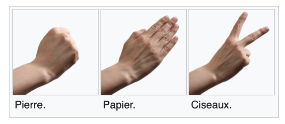 On suppose dans ce cadre que N joueurs sont en présence et que chaque joueur i possède un ensemble Ai d’actions possibles. Dans l’exemple ci-dessus N=2 et les deux joueurs possèdent les mêmes actions : pierre, papier ou ciseaux. L’issue d’un jeu est ici le choix par chaque joueur d’une action, on parle aussi de profil d’actions.