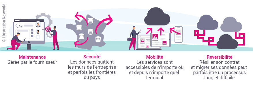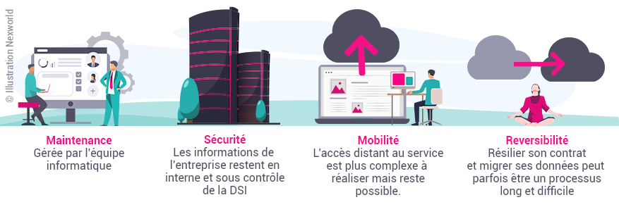 De plus, le coût est plus difficilement estimable car il n’est pas fonction de l’usage du service, cela implique une administration accrue pour vérifier l’usage ou non des ressources déployées.