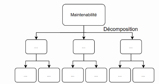 Les relations entre les niveaux hiérarchiques de qualité peuvent être de type plusieurs-à-plusieurs ou un-à-plusieurs. Dans ce deuxième cas, un modèle théorique de maintenabilité définit alors un arbre de qualités logicielles dont la racine est la maintenabilité.