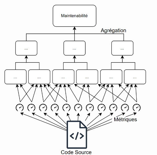 Les métriques fonctionnent comme la tête de lecture des modèles de maintenabilité. Elles offrent ainsi aux modèles le moyen de « voir » le code source. Ces derniers demeurent par ailleurs totalement ignorants du code.