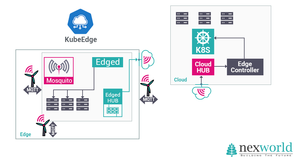 KubeEdge est une plateforme open source qui permet d’étendre l’utilisation des conteneurs et leur gestion à l’univers du Edge sous forme de package. Elle fournit l’infrastructure de base pour le déploiement, la mise en réseau, la gestion des applications conteneurisées et la synchronisation des métadata des devices avec le serveur central.