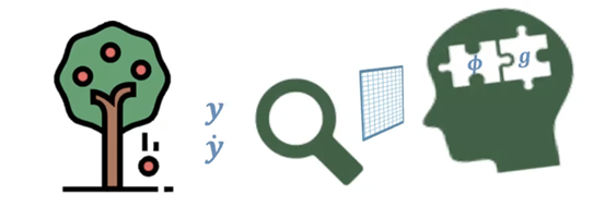 Une simple image mentale peut aider à saisir la difficulté de faire des prédictions robustes à partir de données perceptuelles. Imaginons une pomme tombant d’une branche et supposons que nous nous intéressions à la relation causale entre sa position et son mouvement, considérés comme des causes, et la vitesse avec laquelle elle percute le sol, vue comme une conséquence. Imaginons en outre que Newton n’ait pas encore découvert l’équation qui lui a valu la postérité, mais que nous disposions néanmoins de milliers d’enregistrements de chutes de pommes, observées dans des conditions variées.