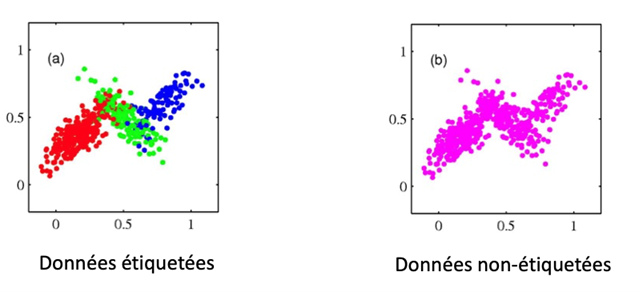 Dans une approche probabiliste, entraîner un classifieur à prédire une cible Y à partir de features X revient à estimer la probabilité conditionnelle P(Y∣X). Le ML semi-supervisé (SSL) repose sur l’idée, ou l’espoir, que la distribution P(X) des features contient une information, généralement négligée, qui peut améliorer l’estimation de P(Y∣X). Par exemple, l’hypothèse de clustering suppose que chaque cluster de P(X) correspond à une valeur distincte de la cible Y.