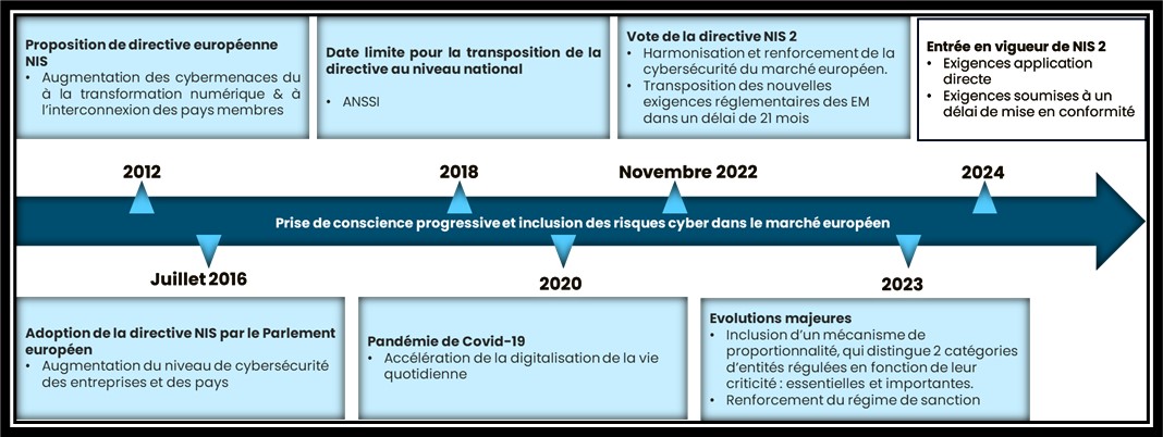 Figure 1 : Timeline d’introduction de la directive NIS 2