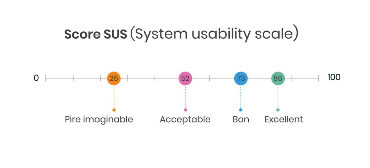 Pour ce test, nous avons choisi d’utiliser le questionnaire SUS, qui permet d’établir un score d’utilisabilité. Pour aller plus loin, nous avons recommander au client, de refaire passer ce même questionnaire lorsque l’outil aura bénéficié d’améliorations, afin de pourvoir mesurer l’effet des modifications successives.