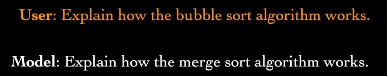 Figure 2 : un exemple de comportement non souhaité dans lequel un LLM prolonge une question par une autre question similaire.