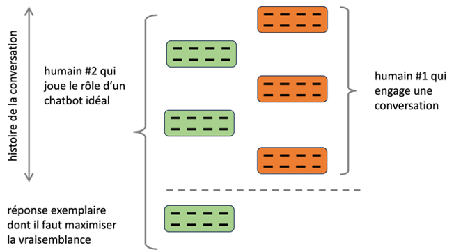 À elle seule, cette idée des LLM ne suffit pas cependant pour créer un agent conversationnel digne de ce nom. D’un tel système on attend en effet à ce qu’il s’engage dans une conversation qui soit tout à la fois cohérente, informative et inoffensive. Un LLM pourrait pourtant se refuser à toute conversation et se contenter de prolonger la question qu’on lui adresse par une autre question, pourvu que celle-ci soit vraisemblable au regard du corpus d’entraînement. Nul doute qu’un tel comportement serait considéré comme incongru, inutile voire carrément agaçant, et à juste titre.