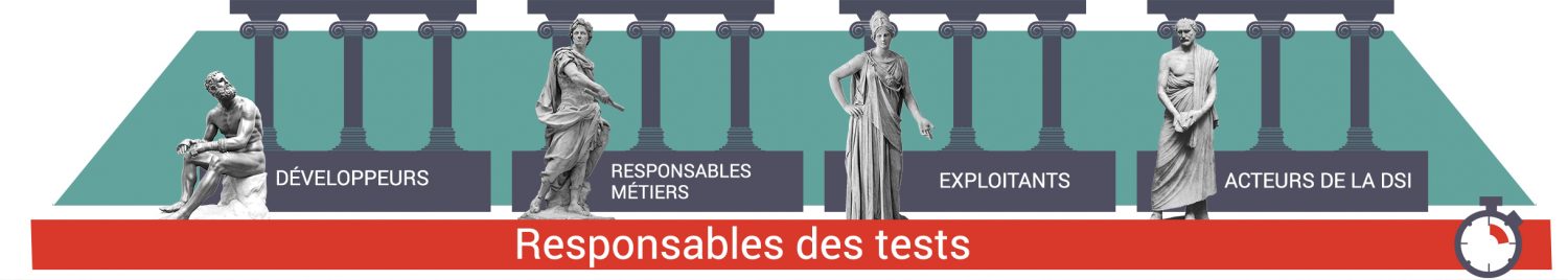 Si les premiers (les tests unitaires) relèvent bien de la responsabilité des développeurs et prennent place dans le cadre de la PIC, les autres sont dans les mains des Métiers, des exploitants et d’autres acteurs de la DSI. Pour être menés de manière qualitative, les tests d’intégration comme la recette utilisateur appellent donc des activités distinctes qui se jouent à différentes étapes du cycle DevOps et non dans une étape unique.