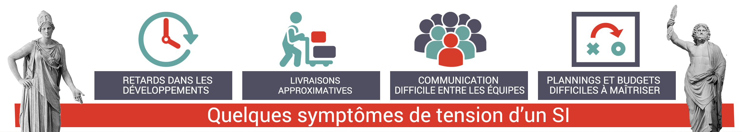 Il faut avouer que les symptômes de cette tension se multipliaient : retards dans les développements, livraisons approximatives, phases de recette longues et coûteuses, communication difficile (euphémisme) entre les équipes, plannings et budgets difficiles à maîtriser.