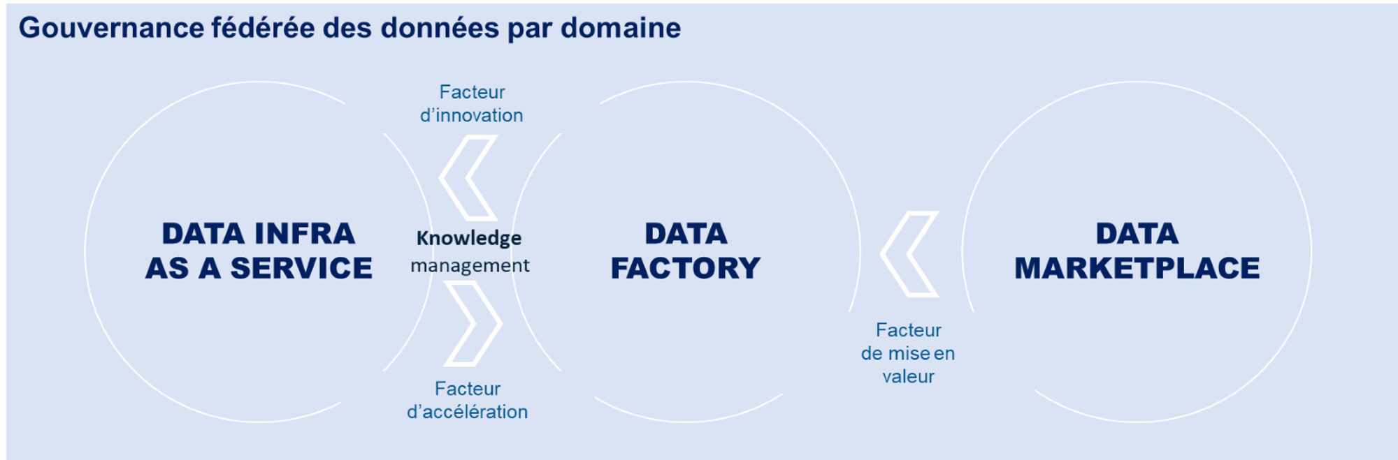 Une équipe et un site interne Data Marketplace qui met en avant tous les outils data de l’entreprise (outils de self-bi, outils de catalogage de données, dictionnaire d’entreprise), des processus pour les utiliser (comment faire la demande d’accès aux données d’un domaine métier, comment faire une demande d’ingestion d’open data), les rôles de l’entreprise en termes de gouvernance (les data stewards, data owners) à un seul endroit. |