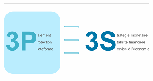 Notre conviction est que sont les 3 P : PAIEMENT PROTECTION PLATEFORM qui sont au service des 3 S (la stratégie monétaire, la stabilité financière et le service à l’économie)