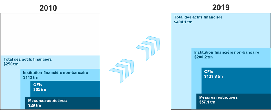 Dans le monde à fin 2019 on a dépassé les 400 trillions de dollars d’actifs financiers . En 2010 on avait 250 trillions de dollars . Or les paiements permettent la circulation de ces actifs. (source Financial Stability Board : Global Monitoring Report on Non-Bank Financial Intermediation 2020)