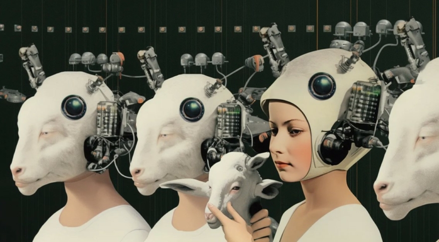Figure 15 : Une image générée via l’outil d’intelligence artificielle créative Midjourney, sur la base du roman de science-fiction de Philip K. Dick : « Do Androids Dream of Electric Sheep ? » (1968)