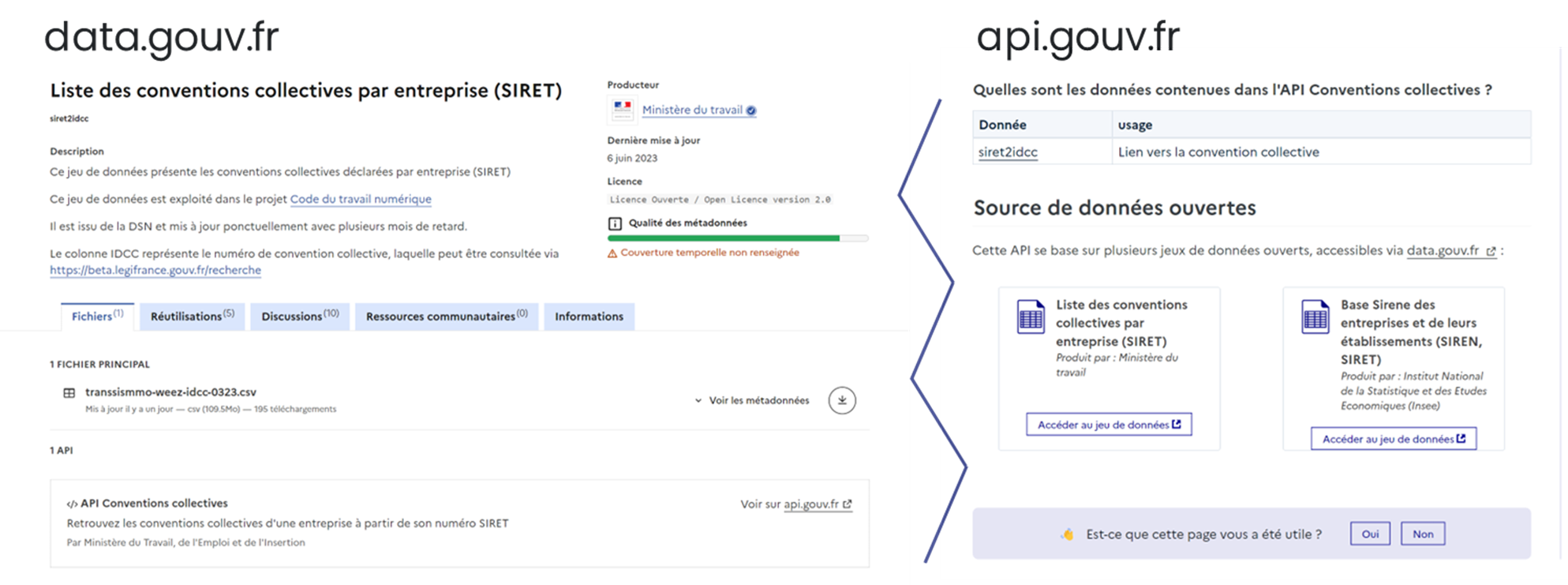 Fig5 : Fiches produits « conventions collectives par entreprise » data.gouv.fr et api.gouv.fr